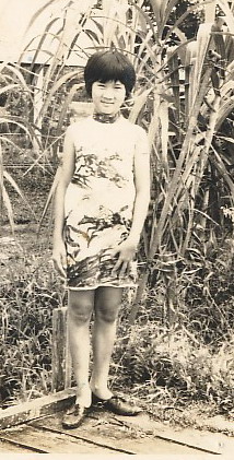 I was 14 with a size 8 feet. Behind me was a clump of sugar cane. The house next door is identical to ours. A brick third class government quarter. By then, Dad had returned from England, became a teacher, a lecturer of the Sarawak Teachers' Training College, and a supervisor of schools.